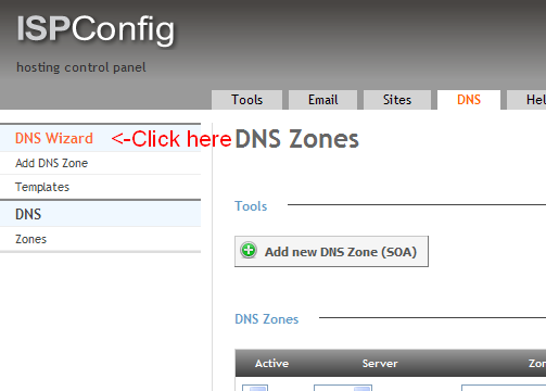 Next you need to add the zone records in ISPConfig3. I would recommend you use the ‘wizard’ to assist you with this if you’re not experienced. That will set you up web and mail records. There is an article waiting to be developed here giving you more detail, but in essence the fields you need to complete after pressing the wizard button should be similar to this: